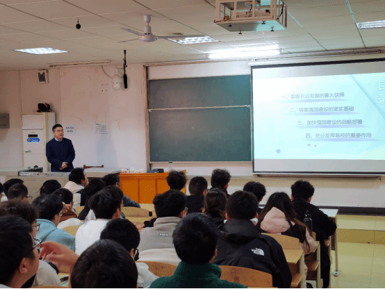 姚校长围绕强国建设中教育、科技、人才三者相辅相成的关系,,,,,,,,我国教育、科技、人才事情已取得的历史性成绩,,,,,,,,建设教育强国、科技强国、人才强国的战略安排和高校在强国建设中的主要作用等四个方面为同砚们教学了党的二十大关于加速建设教育强国、科技强国、人才强国的战略安排的主要内容和深刻意义,,,,,,,,让同砚们熟悉到教育优先生长、科技自主自强、人才引领驱动对周全建设社会主义现代化国家的主要作用和深远影响。。。。。。