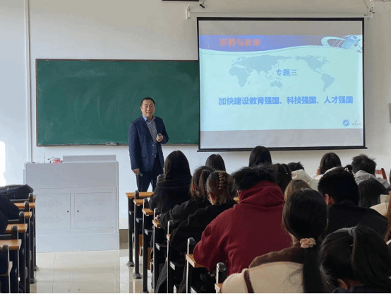 (通讯员 徐肖艺)为贯彻落实《教育部关于增强新时代高校“形势与政策”课建设的若干意见》精神,,,,,,,,推动党政向导干部上讲台讲“形势与政策”课,,,,,,,,12月8日下昼,,,,,,,,校党委常委敖荣军走进2023级应用化学专业学生的课堂,,,,,,,,为本科生作了题为《加速建设教育强国、科技强国、人才强国》的专题授课。。。。。。。