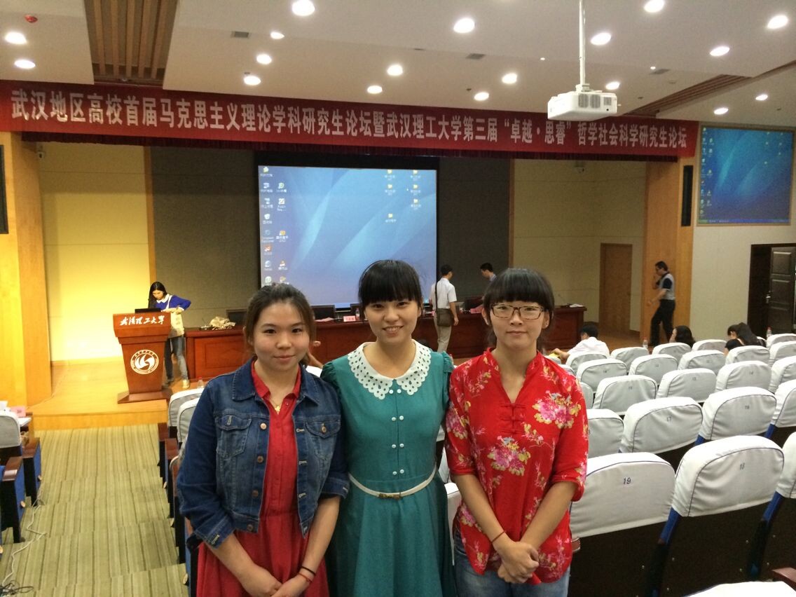 2014年6月,,,,,,武汉地区高校首届马克思主义理论学科研究生论坛暨武汉理工大学第三届“卓越?思睿”哲学社会科学研究生论坛在武汉理工大学召开。。。。。。。我院研究生代表加入了此次论坛。。。。。。。