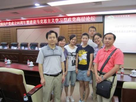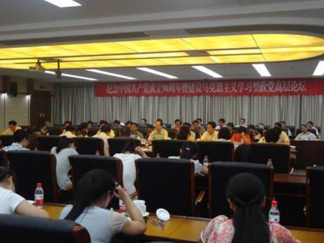 6月11日,,,,,“庆祝中国共产党建设90周年暨建设马克思主义学习型政党高层论坛”天下性学术聚会在华中师范大学逸夫国际聚会中心举行。。。。。。。。院长舒先林教授应邀向导西席和研究生代表加入了聚会。。。。。。。。此次论坛由中共湖北省委宣传部、湖北省社科联和华中师范大学团结举行。。。。。。。。