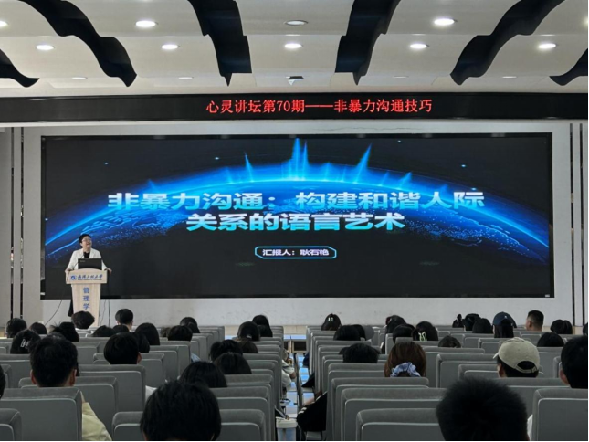本网讯(通讯员 黄薇薇,,,,,,,魏嘉雯,,,,,,,汪喆伦)4月18日下昼,,,,,,,由校学生事情处、心理康健教育中心主理,,,,,,,Stake官网与治理学院团结承办的“心灵讲坛第 70 期——非暴力相同技巧”讲座,,,,,,,在文科楼 413 报告厅圆满举行。。。。。。。。本次讲座特殊约请到湖北省头脑政治教育先进事情者耿石艳先生担当主讲嘉宾,,,,,,,现场气氛热烈,,,,,,,来自学校各个学院的本硕 200 余名同砚齐聚一堂,,,,,,,配合探寻非暴力相同的神秘。。。。。。。。