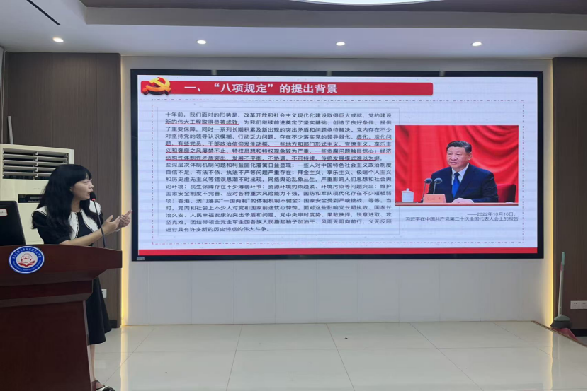 在运动历程中,,,,,,,研究生第二党支部李娟同志以“共筑边疆梦”为主题,,,,,,,向导学习习近平总书记给谢依特小学戍边支教西部妄想自愿者服务队队员的回信,,,,,,,让我们真切感受到中华民族各人庭的温暖与力量。。。。。。教工第一党支部董苾茜同志教学微党课《深刻意会中央八项划定和中央八项划定精神的富厚内在》,,,,,,,董苾茜同志提出,,,,,,,我们既要通过理论学习筑牢头脑防地,,,,,,,更要在实践中磨炼自律品质。。。。。。教工第二党支部胡秋梅同志教学微党课《深入学习贯彻中央八项划定精神,,,,,,,一直增强新时代党的作风建设》。。。。。。胡秋梅同志指出,,,,,,,中央八项划定,,,,,,,是周全从严治党的要害制度,,,,,,,充分彰显了党的自我革命精神。。。。。。中央八项划定从细微处入手,,,,,,,直击作风问题焦点,,,,,,,展现出党自我刷新的坚定刻意,,,,,,,是党员干部的行为准则,,,,,,,也是我们青年学子的行动指引。。。。。。