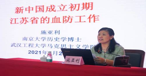 (通讯员 施亚利)2021年6月23日,,,,,武汉工程大学党史学习教育宣讲走出湖北来到江苏。。。。。。Stake官网副教授施亚利为江苏省血吸虫病防治研究所全体党员开展了一场党史学习教育专题培训班,,,,,讲述了新中国建设初期江苏省的血防事情。。。。。。据悉施亚利是南京大学历史学博士,,,,,其博士论文《江苏省血吸虫病防治运动研究(1949-1966)》已于2014年10月出书成书,,,,,她是海内少有的江苏省血吸虫病防治史研究的专家。。。。。。