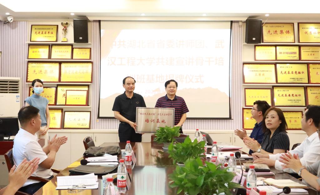 随后,,,,,举行中共湖北省委讲师团、武汉工程大学共建宣讲主干培训基地的授牌仪式。。。。。。。在省校向导、嘉宾的见证下,,,,,舒先林从胡秋春手中接过“沉甸甸”的牌匾。。。。。。。