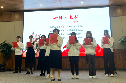 中央红军从江西瑞金出发,,,,,历经血战湘江、四渡赤水、巧渡金沙江等战争,,,,,总里程约为二万五千余里,,,,,最终在甘肃会宁会师。。。。。在对上述长征历史举行回首后,,,,,周智年教授和学生代表通过颂读毛泽东同志的《七律·长征》再一次配合感悟了伟大的长征精神。。。。。
