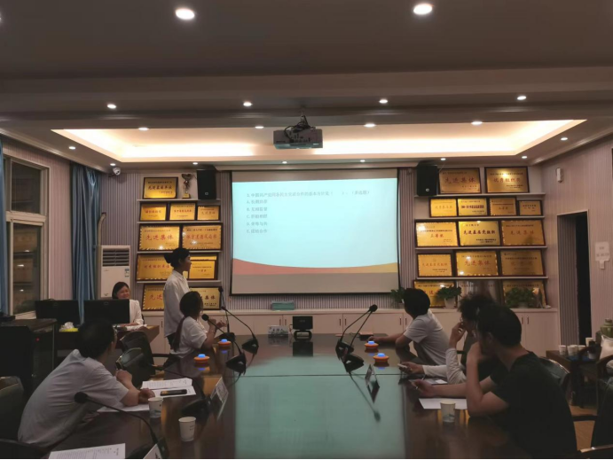 (通讯员陈永贵徐霖)5月24日晚7时,,,,,,“导航杯”(中南同盟)“我们这十年”主题党史知识大赛武汉工程大学校内决赛在Stake官网二楼聚会室举行。。。。。院长曹胜亮、副院长常城出席了本场角逐。。。。。经由班级推荐、在线答题测试,,,,,,15名学生进入本次决赛的现场竞答环节。。。。。形势与政策教研室党史专家、副教授侯赞华担当全程设计和指导。。。。。