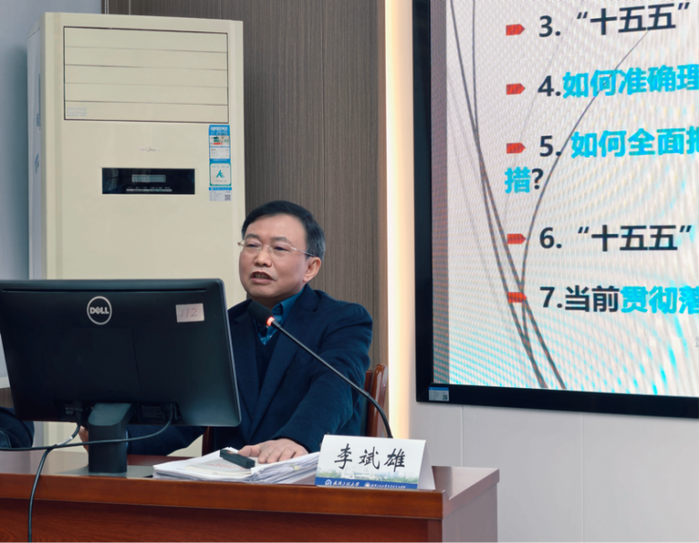 李斌雄教授首先深入解读了党的二十届四中全会通过的《中共中央关于制订国民经济和社会生长第十五个五年妄想的建议》的系列新转变,,,,,,,向导师生配合学习了蔡奇同志在学习贯彻党的二十届四中全会精神中央宣讲团发动会上提出的“五个讲清晰”要求,,,,,,,系统梳理了贯彻落实全会精神需掌握的要害要点,,,,,,,对申报国家社会科学基金项目选题提出了主要建议。。。。。。最后,,,,,,,他将“十四五”与“十五五”妄想建议举行比照剖析,,,,,,,团结党的十九届五中全会精神国家社科基金重大项目招标课题,,,,,,,深入叙述目今研究热门与趋势,,,,,,,给宽巨匠生先容了最新学术动向。。。。。。